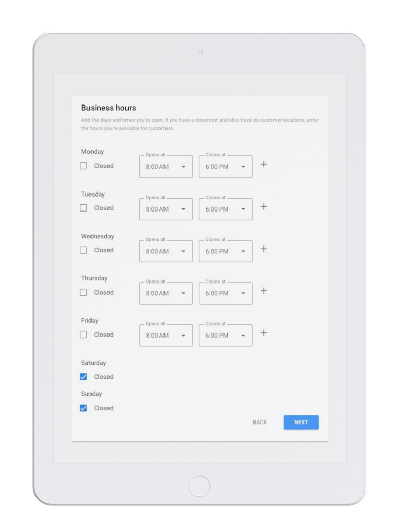*It is important to note that the best practice within ‘Business hours’ is to accurately state your hours of business.